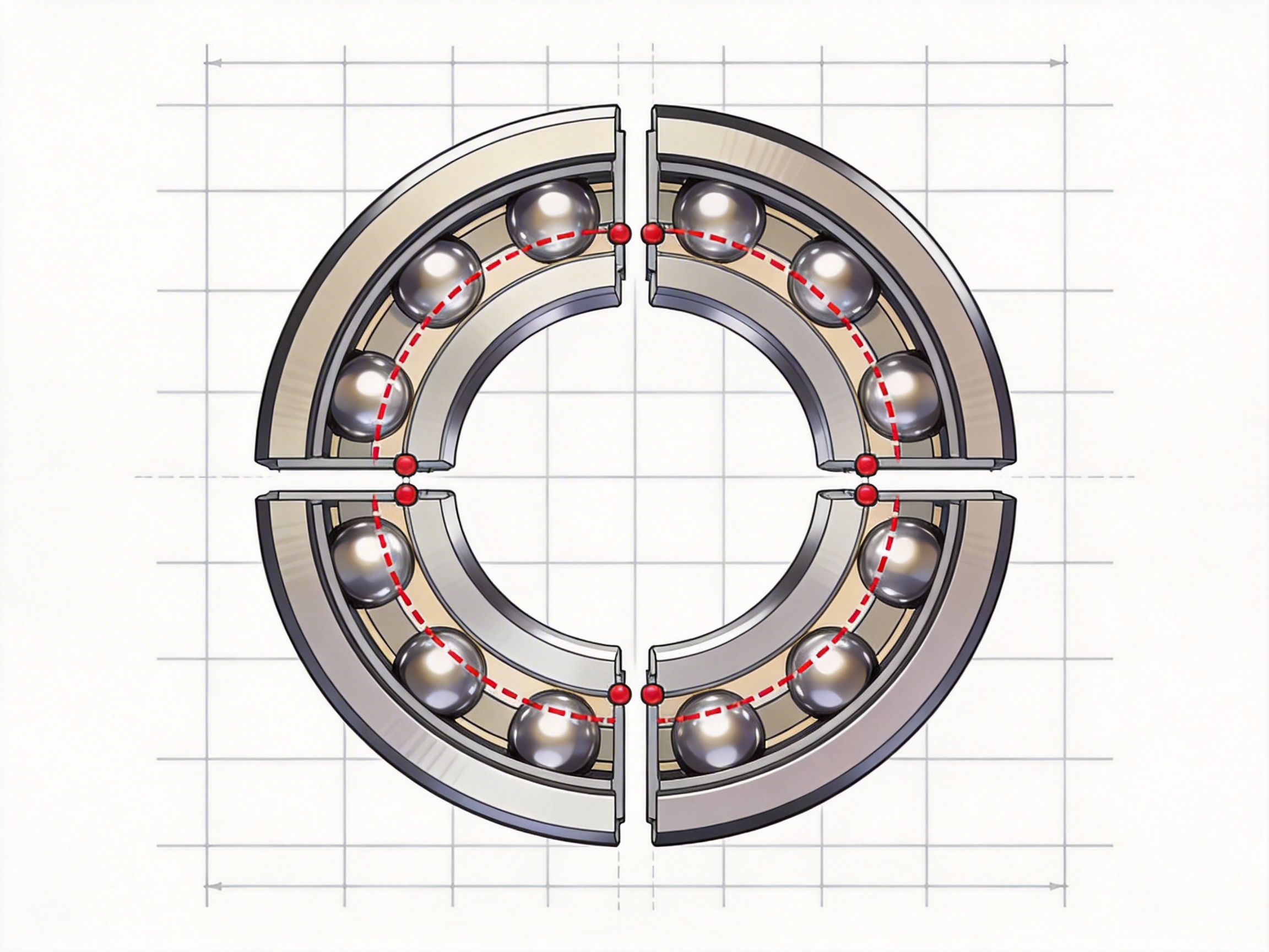 Four-point contact angular contact ball bearings are a specialized subset of angular contact ball bearings, distinguished by their ability to support radial loads and axial loads in both directions with a single row of balls. Unlike standard angular contact bearings, which typically support axial loads in one direction, four-point contact bearings feature a unique raceway design where each ball contacts the inner and outer rings at four distinct points. This design allows for efficient load distribution, reducing stress on the bearing components and extending their service life. In modern industrial settings, where efficiency, precision, and space optimization are paramount, these bearings have become an indispensable component in a wide range of applications—from the joints of collaborative robots to the spindles of high-precision CNC machines. This article explores the technical advantages of four-point contact angular contact ball bearings, the advanced manufacturing processes that ensure their reliability, and their real-world applications. Additionally, a Q&A section addresses common queries, and references to industry standards and technical literature are included to provide a comprehensive overview of these critical components.