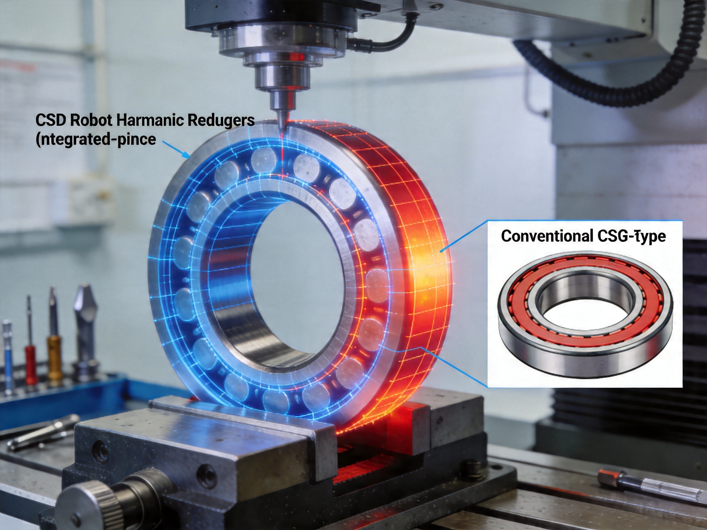 A1: The CSD bearing features an integrated (one-piece) structure for both the outer and inner rings, whereas the CSG type uses separate components. This integrated design gives the CSD bearing higher strength (15-20% increase) while maintaining the same outer diameter as the CSG type, making it compatible with existing CSD series reducers.