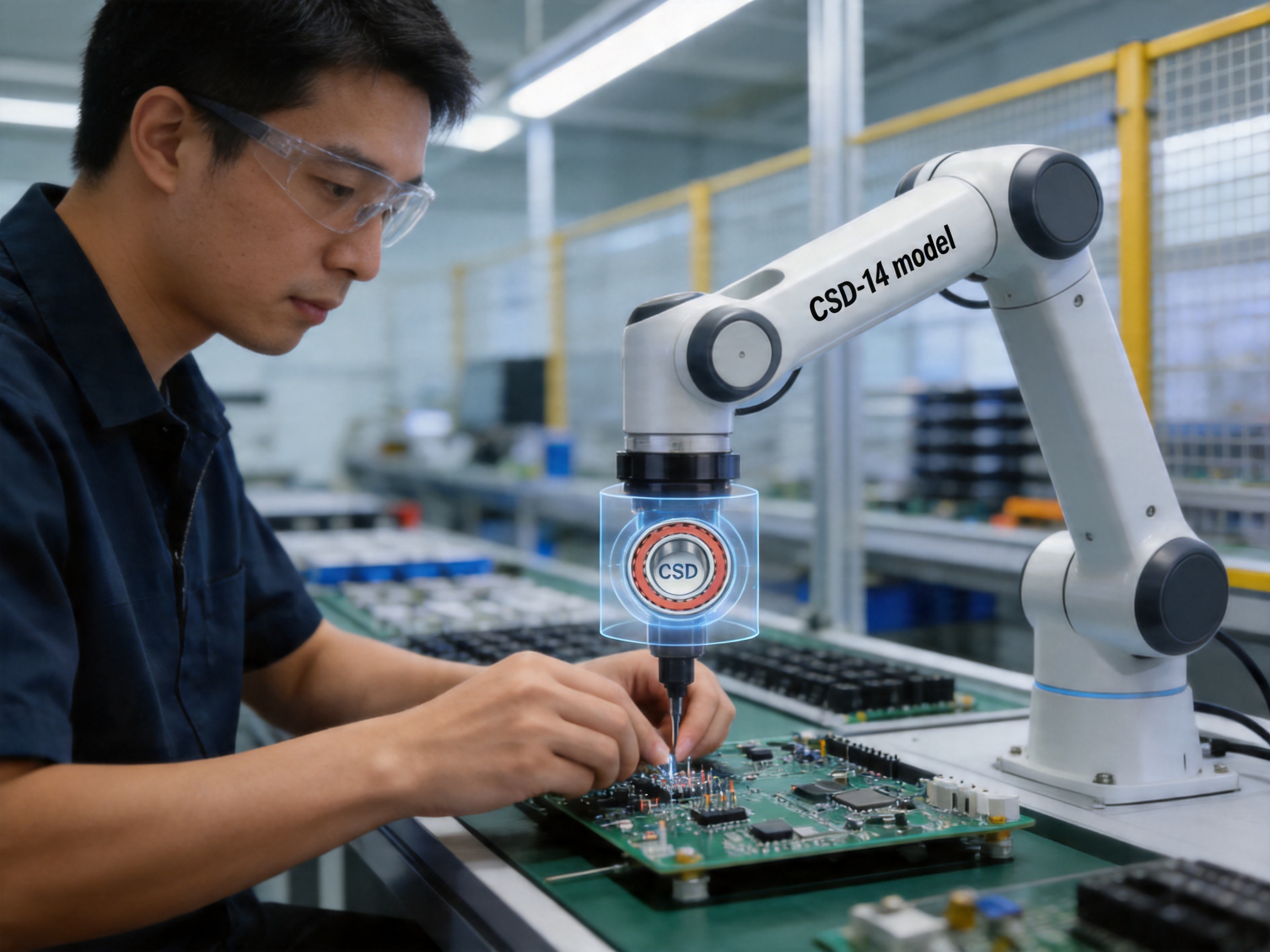 For example, a robotic arm used for automotive assembly uses CSD-40 bearings in its shoulder and elbow joints. The bearing’s high torque capacity (21.3 kN) allows the arm to lift heavy components like engine blocks, while its low backlash ensures precise positioning for welding. In collaborative robots (cobots), the CSD-14 model is used in the wrist joint, enabling the cobot to handle delicate components like glassware or electronic parts without breaking them.