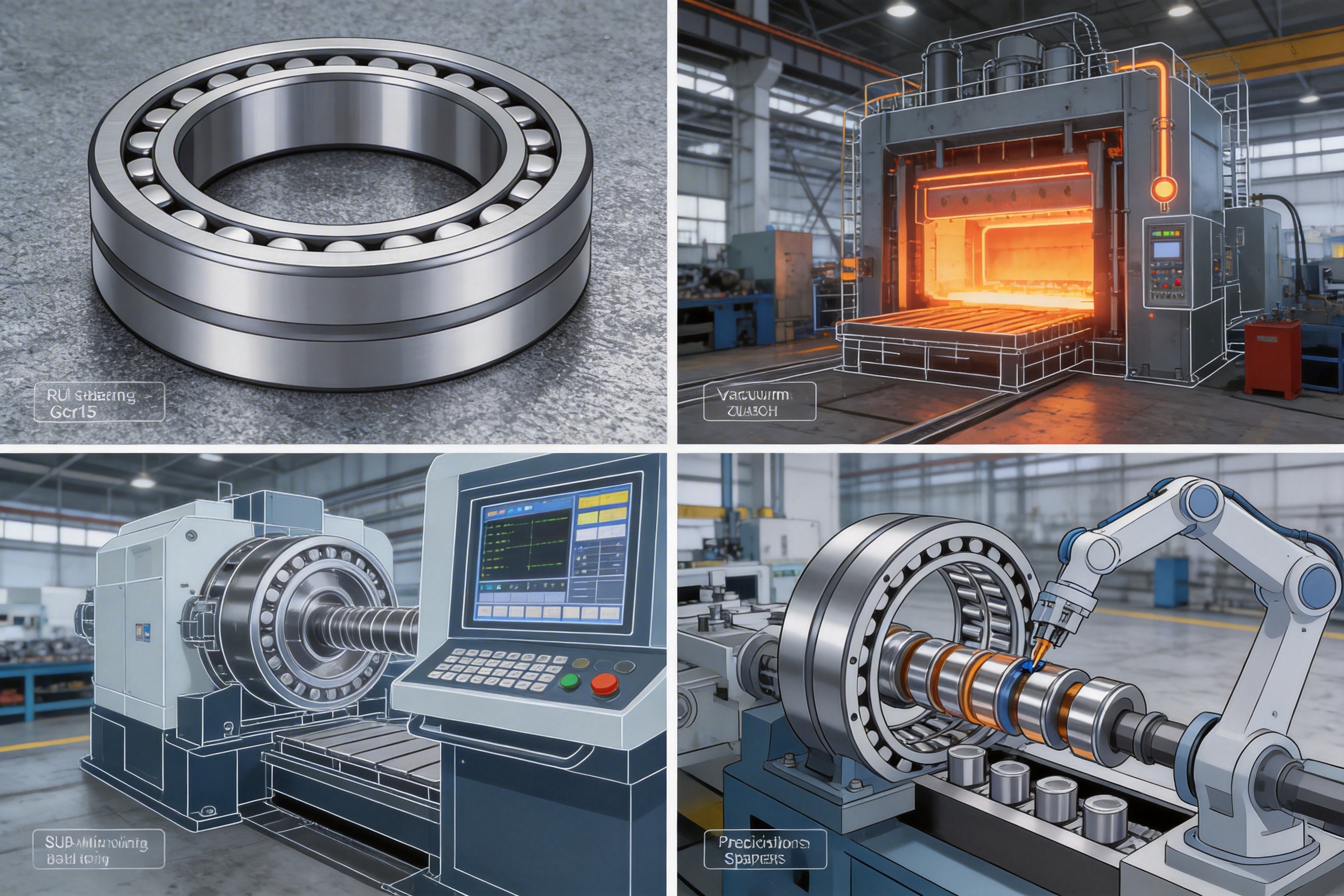 The RU Series uses high-quality GCr15 steel (a chromium alloy steel known for its hardness and wear resistance). The forging process is precision-controlled to ensure uniform grain structure, which enhances the bearing’s strength and durability. After forging, the bearings undergo vacuum quenching and tempering—processes that achieve a hardness of HRC 60-65 with minimal distortion. This ensures that the raceways and rollers maintain their shape under heavy loads.